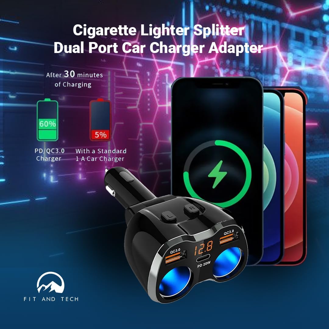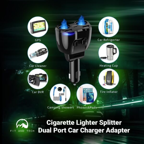USB, iPhone Lightning, Car Cigar Ligther socket |